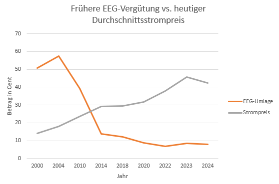 - Vergütung pro kWh ist deutlich niedriger als früher