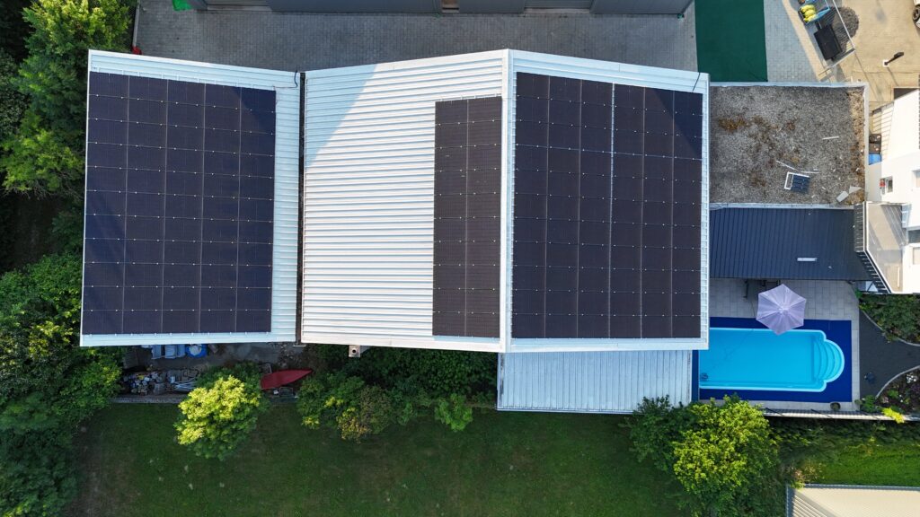 PV-Anlage auf den Hallendächern der VIPA Eventmodule GmbH Bei der VIPA Eventmodule GmbH wurden insgesamt 313 PV-Module auf den Hallendächern installiert. Die Anlage erreicht eine Leistung von 135 kWp. Damit konnte nicht nur der gesamte Eigenbedarf des Unternehmens gedeckt, sondern zusätzlich eine beachtliche Menge an elektrischer Energie in das öffentliche Stromnetz eingespeist werden. Im Zuge der Umsetzung wurde das Thema Netzausbau in enger Abstimmung mit dem Netzbetreiber NetzBW koordiniert. Aufgrund der Anlagengröße war eine Zuleitung mit einem Querschnitt von 150 mm² erforderlich, um Ströme von bis zu 250 Ampere zuverlässig ins Netz einspeisen zu können. Für eine Anlage dieser Größenordnung wurde eine neue Zähleranlage gemäß DIN VDE 4105 errichtet. Diese beinhaltet zentrale Schutzeinrichtungen wie den NA-Schutz (Netz- und Anlagenschutz) sowie einen Rundsteuerempfänger, der die Kommunikation mit dem Netzbetreiber ermöglicht. Die PV-Module sind auf vier Wechselrichter verteilt, die den erzeugten Gleichstrom (DC) in netzkonformen Drehstrom (AC) umwandeln. Die Einspeisung erfolgt dabei symmetrisch ins öffentliche Netz. In der sonnenreichen Region Südbaden kann man bei einer PV-Anlage typischerweise mit einer Jahresproduktion von ca. 1.000 kWh pro kWp rechnen. Diesen Wert konnte die Anlage im Jahr 2024 vollständig erreichen, was die hohe Effizienz und Qualität der Umsetzung unterstreicht. Dank der erfolgreichen Umsetzung der PV-Anlage ist die VIPA Eventmodule GmbH bestens für die energetische Zukunft gerüstet und leistet einen aktiven Beitrag zur Energiewende.